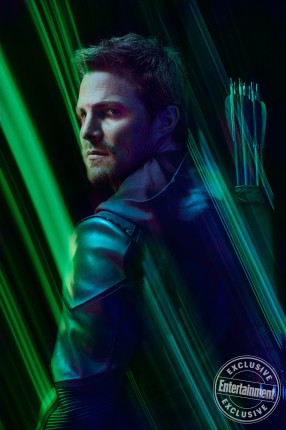Потенциально опасная идея пришла команде EW и для промо Зеленой Стрелы. С другой стороны, за восемь лет Стивен Амелл уже сотни раз позировал с луком и стрелами и, должно быть, утомился от этого. Потому для него нужно было придумать что-то новенькое, сложное и бросающее вызов. Карлосу вспомнилась знаменитая обложка Esquire, на которой великий Мухаммед Али стоит со связанными за спиной руками, а из его тела торчат несколько стрел. «Но мы не хотели аналогичным образом застрелить Оливера Куина, ведь он все-таки супергерой, — комментирует художественное решение Серрао. — Вместо этого Уорд вонзил множество стрел по силуэту Стивена в стену за его спиной». Таким образом фотограф и его команда подчеркнули неуязвимость полюбившегося зрителям персонажа.