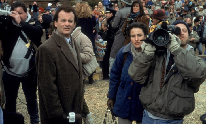 Шедевр Рэмиса работает как метафизическая притча об искуплении отчасти потому, что чудесно проработанный мизантроп Фил начинает свою историю в эмоционально мрачном состоянии. Перед камерой он неубедительно пытается скрыть ненависть к своей работе, коллегам, жизни и самому себе. Тело Фила может быть временно заперто на съемочной площадке в Пенсильвании, но в голове он уже сосредоточен на следующей должности, следующем повышении, следующей станции и городе, которые станут трамплинами для его безграничных амбиций. Как будто насмехаясь над его планами, телеканал отправляет Фила, его помощника-оператора Ларри (Крис Эллиот) и немного сумасбродного нового продюсера Риту (Энди МакДауэлл) в крошечный городок Панксатони, чтобы сделать сюжет о том, как местный сурок-пророк творит свою магию. Согласно традиции, если животное увидит свою тень и вернется в нору, штат обречен еще на шесть недель зимы. Если нет, это должно предвещать раннюю весну.